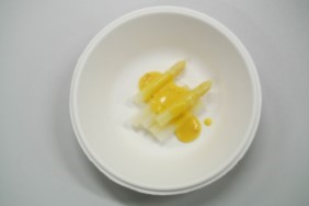 - 料理は、ホワイトアスパラのカルボナーラソース、グリーンアスパラと鶏の塩レモンマリネなどを試食した。